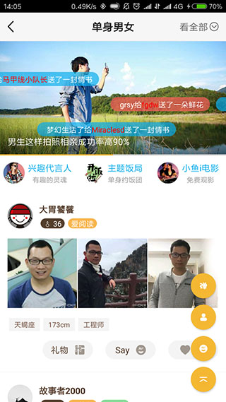 3、在这里还可以找到属于你的情缘,在单身男女版块中有很多孤独的灵魂等你遇见