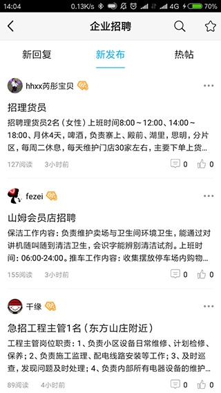 1、厦门小鱼网app提供很多功能,第一当然是招聘了,在首页点击职场就可以看到新发布的招聘信息
