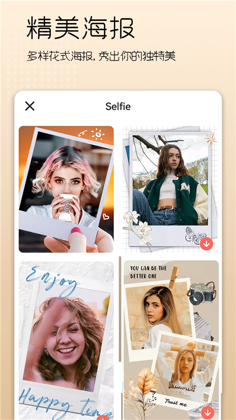 1、美颜拍照/美妆自拍: 美颜拍照,美颜自拍,美化你的自拍照; 100+自拍实时滤镜任意选择; 200多个搞笑逗趣贴纸; 2、照片拼图/照片编辑: 拼图、自由拼图、拼长图、海报制作; 美化、编辑、P图、照片质量调整; 支持基本的视频编辑,删除不需要部分;美颜美妆怎么制作照片海报