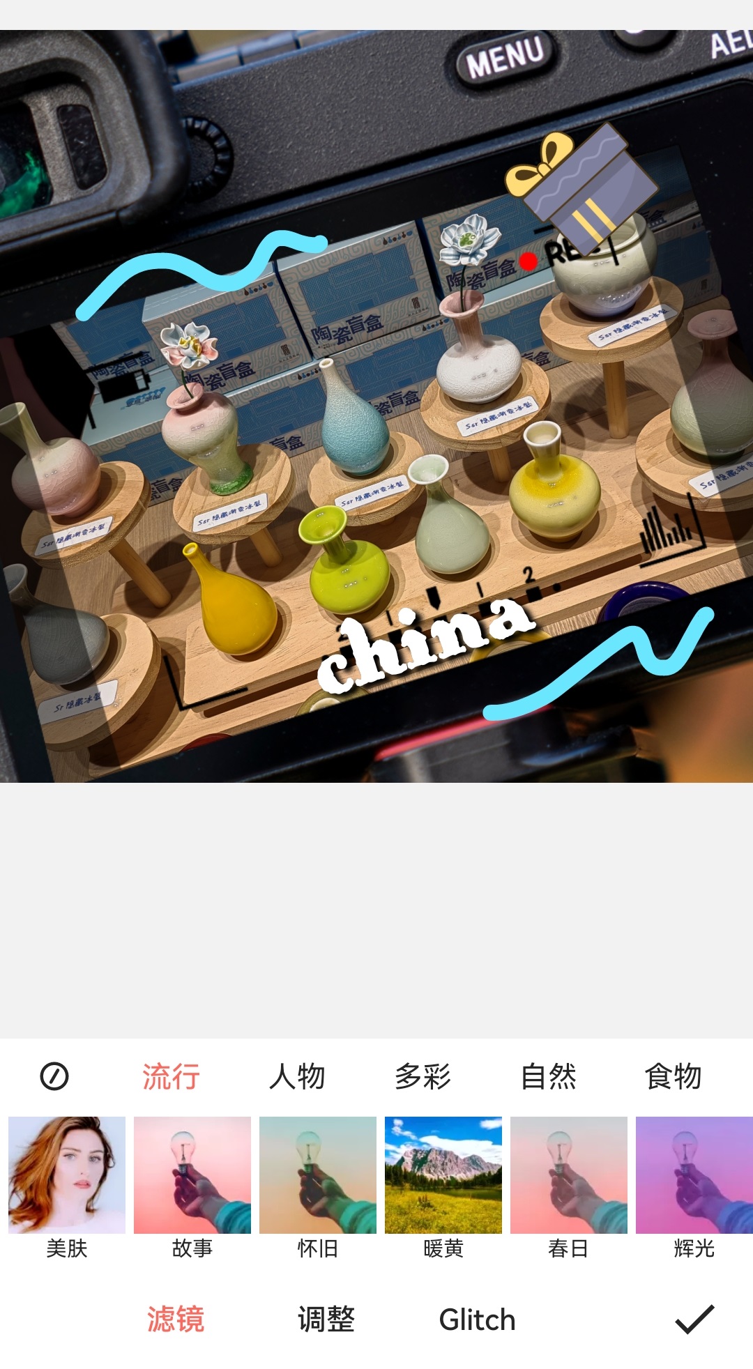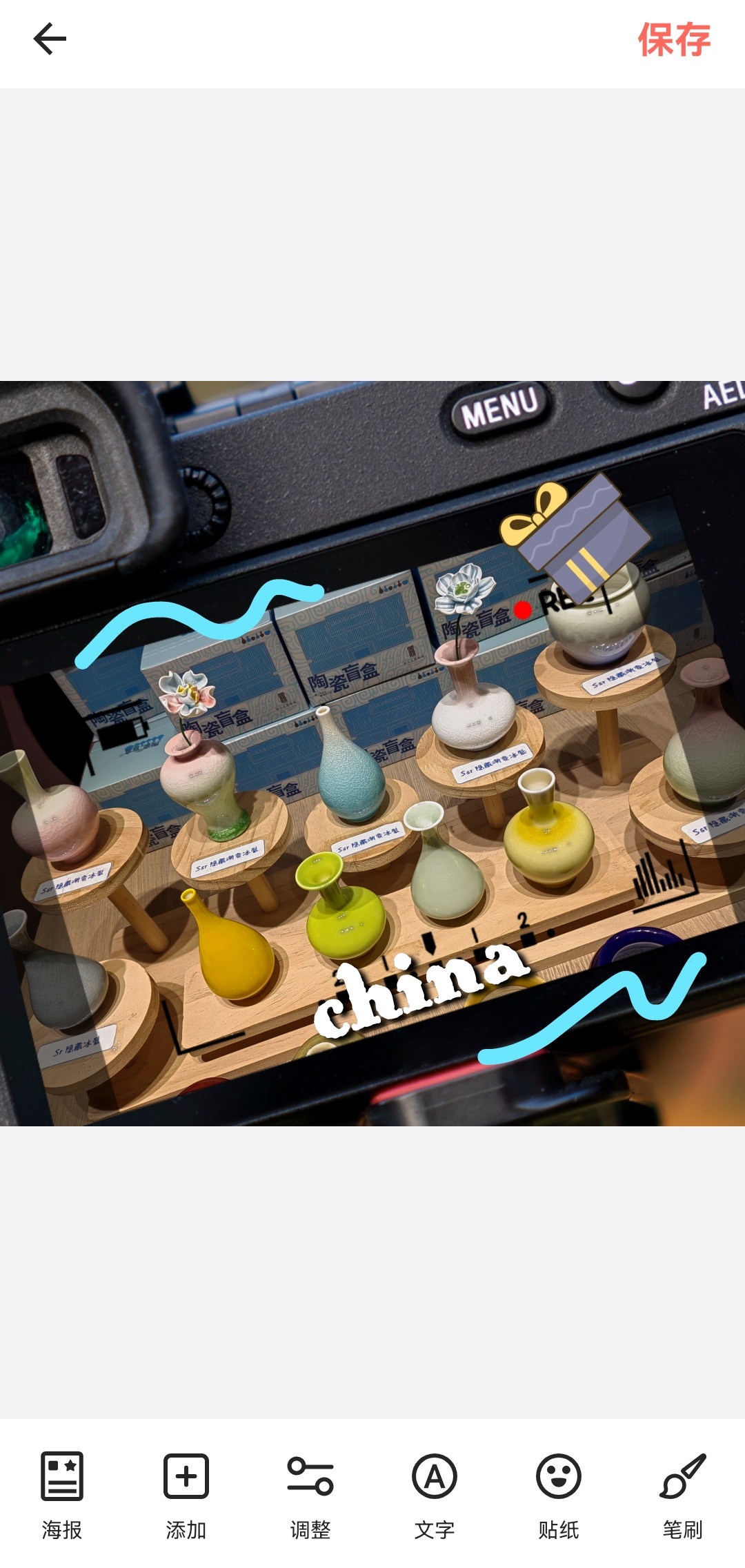 5、可以给照片增加你喜欢的文字、贴纸和涂鸦。
