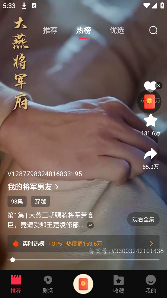 3、进入选中的短剧之后可通过点击小心心和分享视频表达自己的喜欢。