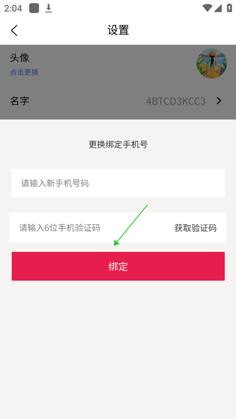 3、输入新手机号后获取验证码验证,点击绑定即可完成。