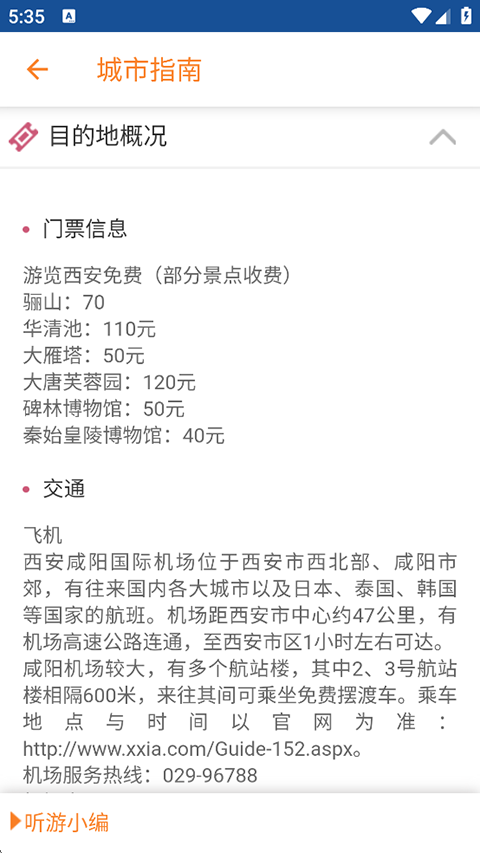 1、专业的智能语音导游系统,专门为喜欢自由行的旅行爱好者而设计。 2、将语音导游、门票信息、旅游攻略、景点美图、旅游足迹等全面集中展现。 3、我们的智能软件像一个经验丰富的导游,当您进入景区时,及时地向您推荐您当前的游览线路及沿途景点。 4、当您漫步在景区时,西安导游能根据当前您所处的景点位置,为您提供生动的语音解说及详尽的图文介绍。 5、当您处在景区外时,西安导游是一本妙趣横生的百科全书,图文并茂地向您展示着景区深邃的文化内涵和丰富的历史积淀,让您体验到景区身临其境的愉悦感。应用特色