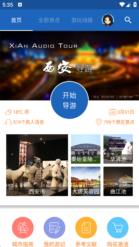 1、导游 步行和行车导游双模式随您选择,通过GPS定位为您精准播报每个景点的历史文化和内涵。 2、攻略 丰富实用的游园信息,景区概况、交通线路、住宿等实现一站式查询,让自助游览更便捷、更舒心 3、游记 导游模式下,您还可以边听边拍,生成带有您游玩轨迹的旅游日记,和好友一起分享。 4、线路 提供景区内旅游线路,畅游西安尽在其中。 5、文摘 大量的文摘供您更详细的了解景区。旅游时间