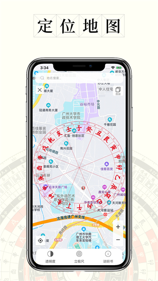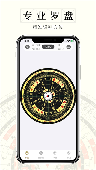 3、软件的具体操作也很简单,手动模式下单指即可转运罗盘;双击不同位置,放大/缩小罗盘;双指捏合缩放罗盘;双指拖动罗盘。