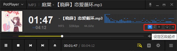 2、而在右下角方便可以设置设定区段起点、重置区段循环、设定区段终点、循环播放、随机播放等设置。