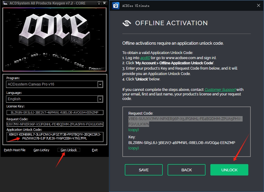 11、点击“Gen Unlock”生成激活码,然后点击“UNLOCK”。
