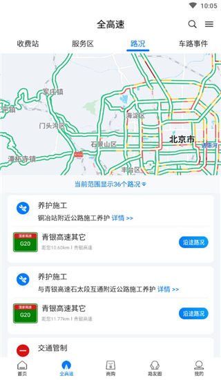 1、天气、高速通行、收费站开闭信息全掌握,出行提前规划; 2、导航路径规划及实时路径导航,回家路最快最短; 3、高速服务区餐饮信息,可联系商家预订,拒绝等位排队; 4、高速救援、周边景点、应急知识多种服务伴您行。功能介绍