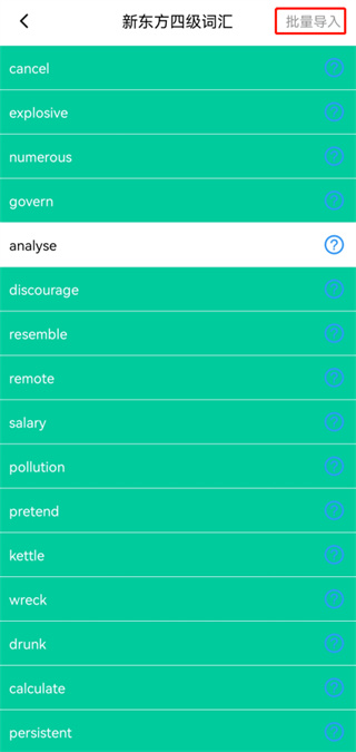 4、进入后,用户可以点击右上角的批量导入来导入单词;