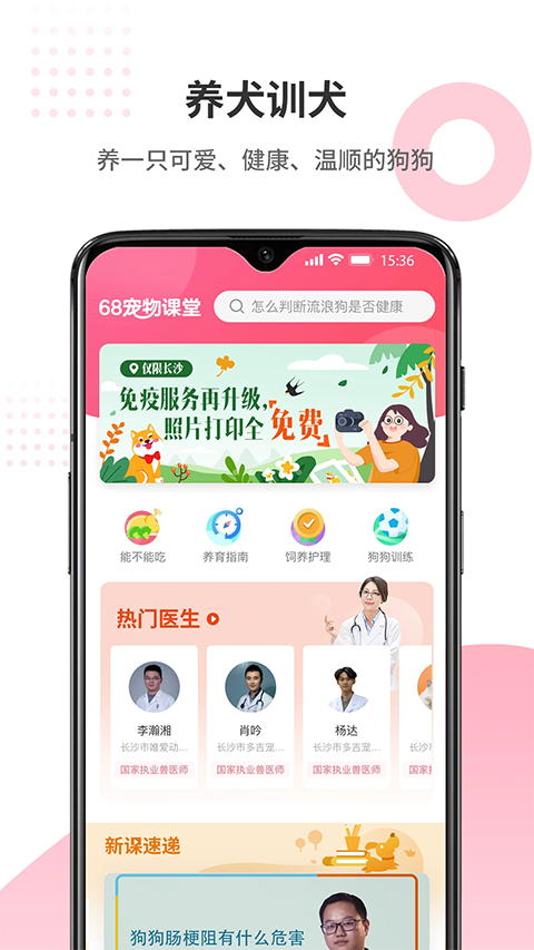 1、附近医生为您的萌宠健康保驾护航,有任何需求都可以极速咨询宠物医生。 2、丰富多样的宠物话题,结识更多爱宠认识,在遛狗的时候还能组队出行。 3、海量训犬视频可以自由观看,让您训犬无忧,自己也可以轻松训练爱宠。 4、丰富的线上问答内容,遇到问题的你,可以直接提问,或是查看相似问题。 5、随时可以在这里进行知识学习,都是以养宠为主题的内容,能够随意信息。 6、通过话题互动的方式,还能在这里跟着广大爱宠认识学习养宠经验与技巧。软件功能