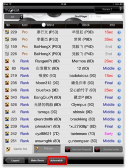 3)自动对局申请:在大厅点击“Automatch”按钮自动进行对局申请