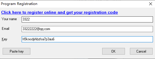 9、将生成的注册信息复制到软件对话框中,姓名、邮箱随意即可