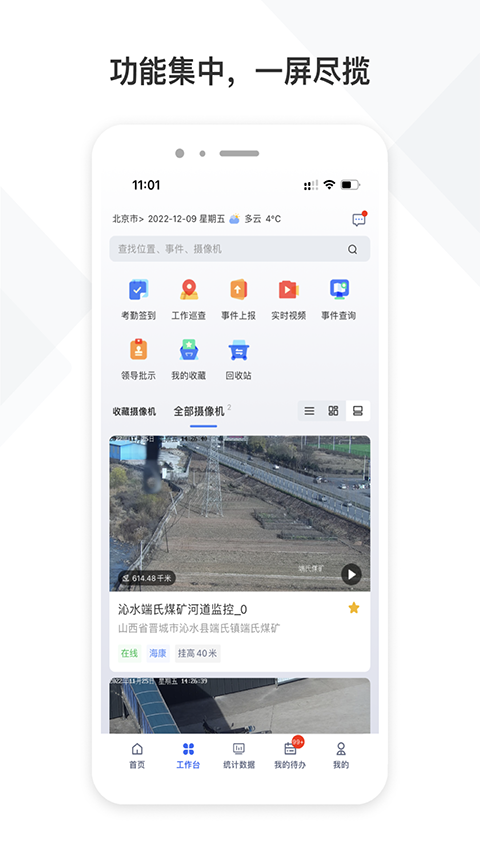 1、视频查看和管理。 2、事件全流程闭环处理。 3、日常办公,包括考勤签到、工作巡查、领导批示等。 4、地图数据可视化、统计分析可视化。更新日志