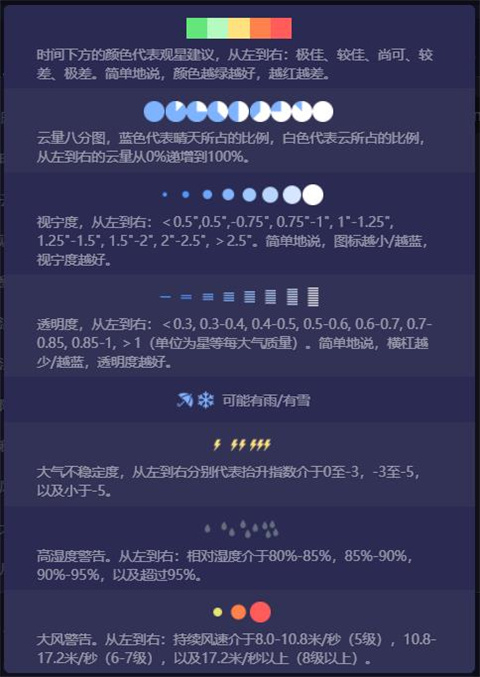 一般24小时内的预报相对准确(除非台风等特殊气象因素),时间越往后越可能偏差,因此天文通最多提供了3日的观星指数。