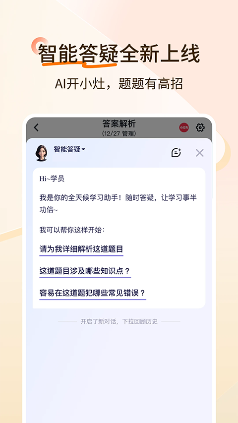 1、【快速智能练习】碎片时间,快速刷题 2、【模拟预测考试】定期模拟,感受考试 3、【错题汇总复习】错题记录,随时复习 4、【热播视频解析】经典习题,视频解析 5、【学习水平评测】智能评估,随时模考 6、【边学习边笔记】疑难笔记,定期翻看更新日志