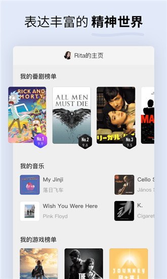 【创建主题】发布图文帖子,创建专属主题。 【标记榜单】给你喜欢的影音书、游戏、番剧打分,生成专属榜单。 【兴趣匹配】根据发布的内容,为你匹配最志趣相投的朋友。 【小组发帖】在感兴趣的小组里,表达即时的心情和观点。软件亮点
