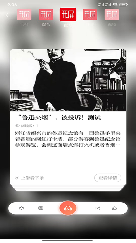 1、新闻报道 7×24小时不间断更新,为你带来新闻现场第一手资讯。 2、媒体订阅 精心挑选优质媒体,订阅丰富阅读内容。 3、本地资讯 开屏新闻app提供基于位置服务的本地新闻、家乡新闻、天气查询。 4、内容分享 用户可以分享感兴趣的内容到自己的微博、微信或电子邮箱。软件优势