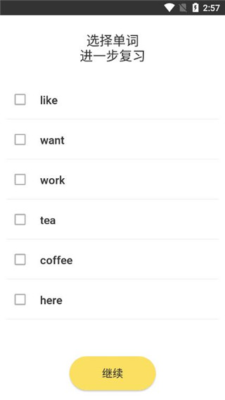 2、选择单词开始学习,通过英译中,完成单词任务。