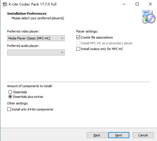 K-Lite Codec Pack Full(影音解码器)是一款能够为您提供绝大多数影音格式的解码器,它包含了先进的播放器MPC HC加所有必要的编解码器,软件内集合了丰富编解码器程序和工具软件的套件包,装了K-Lite Codec Pack Full之后,您的播放器就可以通吃绝大多数的影音格式,小而强大! 更加难能可贵的是,它并不是一股脑的帮你安装所有格式的解码组件,而是可以根据您使用时候的需要,提示您选择性的勾选,来安装的编解码器程序,以避免不必要的资源开支。