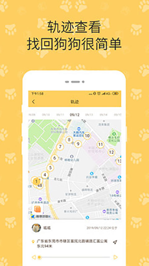 1、【狗狗定位追踪】 陪彼定位器实时追踪狗狗位置,狗狗一走动,立刻触发定位,定位更快更精准,72小时运动轨迹随时查看,看得到它走过的每一个位置,主人更安心。 2、【超长续航30天】 超强的续航能力,保障寻找狗狗时有充足电量,每月仅需一次充电,使用更省心。 3、【运动情况监测】 记录狗狗每日和每月的运动时长、运动距离及消耗热量,开启更健康科学的养宠生活。 4、【宠友圈】 现在开始,狗狗也有属于自己的朋友圈,在这里,认识新宠友,写下只属于狗狗的成长记录。陪彼宠物官方版使用教程