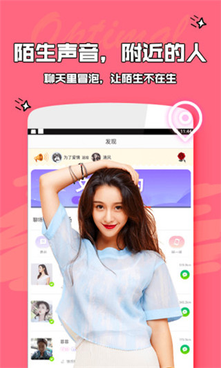 1、大神陪玩 王者大神在这等你开黑,萝莉御姐声音任你挑选 2、语音聊天 超高质量连麦语音,用声音陪伴你左右 3、互动交友 用声音展示自己,约会交友,打动TA的心 4、听觉盛宴 声优、男神、女神给你带来前所未有的耳听盛宴功能介绍