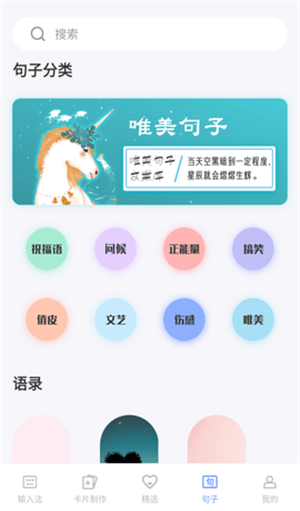 4、各种类别的唯美句子里面应有尽有,害怕找不到?软件做了详细的分类方便用户查找。
