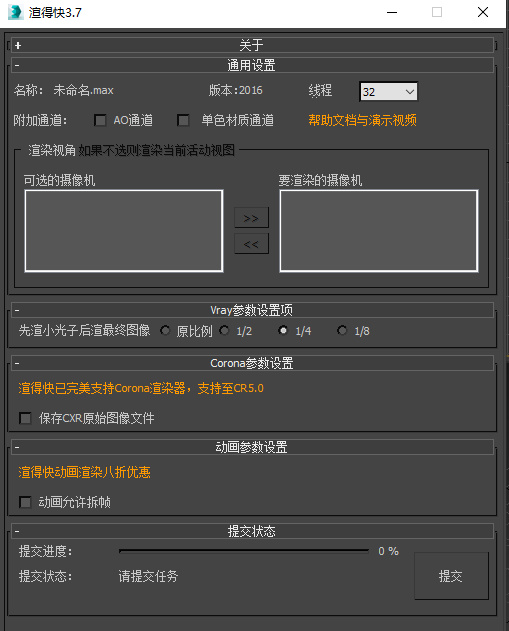 1、独家异常时长预测 渲染超长直接在最开始预测,并发送短信提醒。 2、独家OSS线路快传 速度峰值达5Gb级每秒远领先于其它平台。 3、独家动态加减配 渲得快绿色版支持灵活弹性渲染,轻松应对临时加急图。 4、独家自适应开关机 节省电能成本,使我们能给客户更多让利。 5、独家支持实时进度显示 不看截图就知进度,多任务进度一目了然。 6、源文件保存长达3周 源文件与结果均双重备份,防止用户文件丢失。使用说明