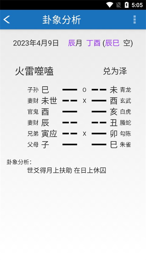 1、算卦速度快:六爻玄空软件采用先进的计算算法,算卦速度快,同时可以根据指定时间进行起卦。 2、界面简洁美观:软件界面清新简洁,卜筮起卦操作简单,对用户友好。 3、功能丰富:软件提供了六爻排盘、姓名算命、八字算命等功能,还有关于易经六十四卦、爻辞等方面的详细解释,丰富了用户的占卜体验。 4、卜卦解释详细:软件提供了详细的爻辞解释、卦象分析、卦变推测等,可以准确指导用户进行占卜。 5、数据可靠:多年来,六爻玄空积累了丰富的卜卦数据和用户反馈,数据可靠性高。功能介绍