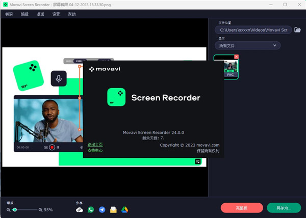 Movavi Screen Recorder 是一款便捷的图像捕捉软件。Movavi Screen Recorder不仅整体积精简小巧、界面清爽直观,易安装易操作,并且功能完善,集屏幕录制机、视频编辑器、以及捕获截图等多重模式于一体,让您只需轻松一键点击开始截屏、录制屏幕等。Movavi Screen Recorder不但能够轻松帮助大家录制内部音频的视频,又或者是录制在计算机上播放的孤立音轨,还支持您通过网络摄像头、来录制Skype通话、制作动画、GIF捉网络摄像头等操作。且其中海量的配音、背景音乐、开头视频以及背景图等文件皆任你自由选择,并通过简单的编辑工具来对视频进行优化和改进,从而制作各种精彩内容,留住你想要的任何瞬间。有需要的朋友赶紧来下载试试看吧!