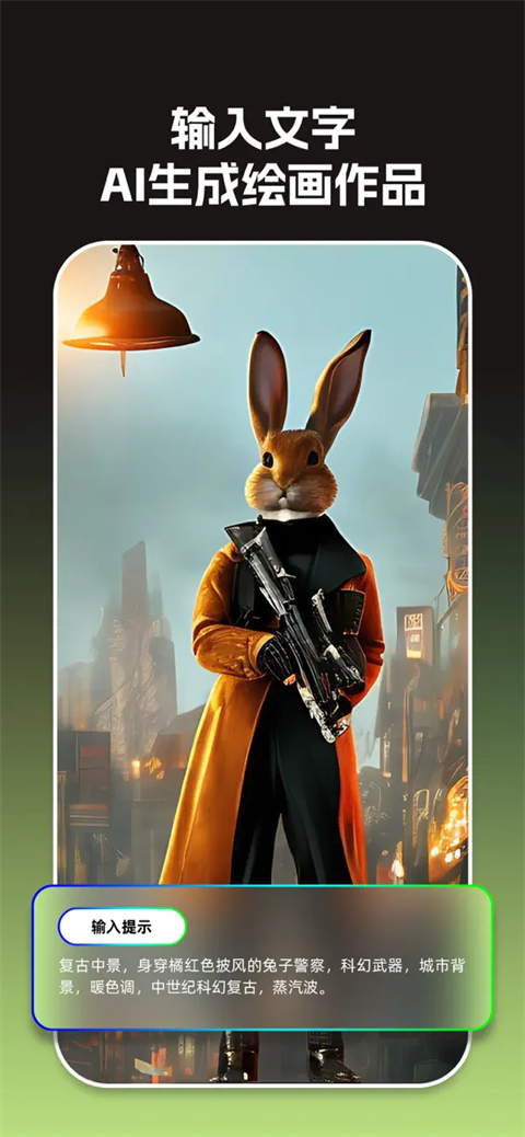 4、或者你也可以选择输入文字,AI即可读懂你的意思,一键生成高清优秀的艺术作品。卡通头像也是不在话下,一键创造出独属于你的精美头像