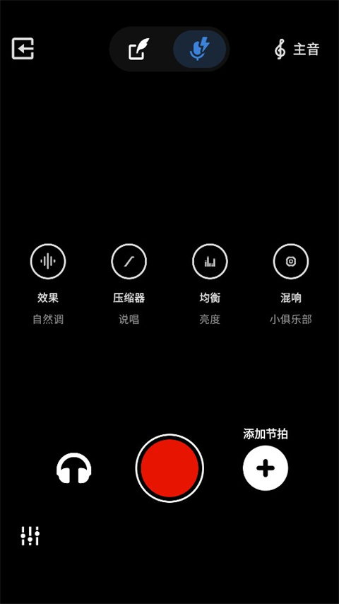 进入录音室后,您可以通过轻触屏幕顶部中心标记为“音频”和“视频”的切换按钮在音频和视频录制之间切换。
