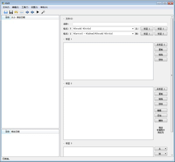 1、如果音乐文件中的信息正常,那么通过界面上的【格式: 从:】功能就可以快速、统一的修改文件名,并且只需要你点击一下按钮即可。 2、如果音乐文件名中的信息正常,那么通过界面上的【格式: 到:】功能就可以快速把文件名中存在的信息导入到ID3标签中。 3、文件名和ID3标签2者之间信息的转换是通过%{track}、%{artist}、%{title}这些变量名做到自动化的,并且在下拉菜单中你还可以获取到更多不同的格式,熟悉的话也可以手动修改到自己喜欢的格式。 4、批量查找和替换功能。没有错,当你往Kid3中添加了多个音乐文件后,还可以使用替换和查找功能一次修改所有文件中的对应信息。 5、导入功能。通过文件菜单,你可以从音乐网站上导入音乐文件的对应文件信息,而不需要你手动输入。更新日志