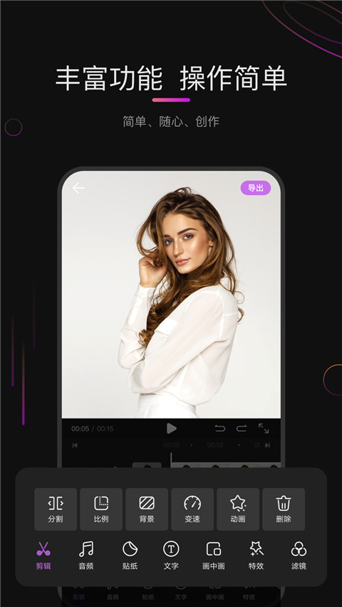1、一键直达剪辑,让创作快人一步 用户除了可通过的桌面快捷方式进入剪辑界面,还可通过华为手机的图库,选择视频进行编辑,一键直达,体验高阶剪辑功能。花瓣剪辑为用户提供扁平化的操作界面,用户不必再在复杂的面板中寻找想要的功能,让视频剪辑更高效、更省时,创作快人一步 2、独特的ai功能,真正的“人性化”剪辑软件 拥有独特的人脸遮挡功能,借助于ai算法能力,可以实现对目标人脸进行动态遮挡,还有多种动物卡通形象可做遮挡贴纸,不仅能保护用户的人脸隐私,还能增加视频的趣味性。更有专属滤镜功能,用户可将喜爱的目标图片或视频片段截图的色调保存为自己的专属滤镜,直接运用在正在编辑的视频上面,轻松实现滤镜同步 3、海量模板和曲库资源,给创作多种选择 此外,提供海量酷炫、有趣的素材,激发灵感,带来更多的创作选择。用户只需在选择感兴趣的模板后,点击“剪同款”,上传对应的照片或视频素材,即可轻松一键生成高质量的视频。同时,花瓣剪辑基于华为音乐的丰富的曲库资源,提供海量的正版音乐供用户选择。简单易上手,新手用户也能快速掌握。此外,还有更多创意剪辑、热门玩法、编辑技巧,可供专业用户进一步探索花瓣剪辑最新版本使用教程