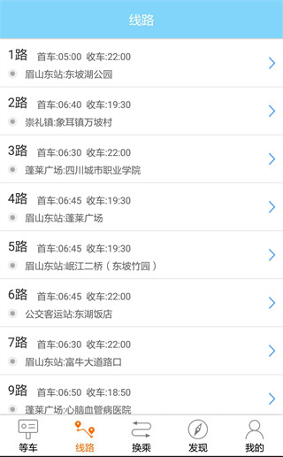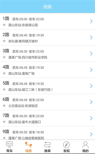 5、一目了然的线路列表,里面按照升序的模式排列了从1号到后面各种号数公交线路列表;