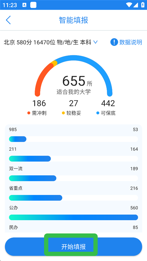 5、然后用户可以依次点击冲刺、稳妥、保底查看学校。