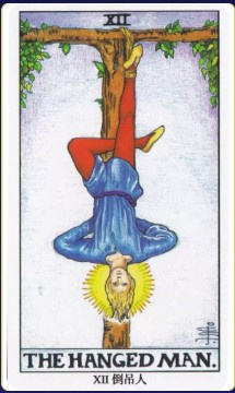 1、倒吊人 他是奥丁的化身,为了追求知识,面对试练,自我牺牲,把自倒挂在书上,他没有感到痛苦,只是在这糟透了的状况下默默省。只要忍耐,他的献身终会得到回报。