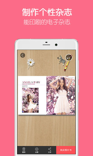 1、海量模板 音乐相册、拼图、图文编辑模板在线更新。 2、分享超多图片 支持添加海量照片,让分享无拘无束。 3、隐私保护 支持为作品设置密码,只给亲密的人看。 4、语音输入 语音轻松给每张照片配字。 5、给力红包 送大额现金券,可用于照片冲印和杂志印刷。 6、十年印刷经验 进口高质量相纸,专业设备,保障冲印品质。功能介绍