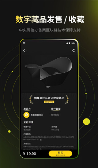 【数字藏品发售和社交平台,让数字藏品变得更有价值】 在像素蜜蜂,你可以购买到唯一的、不可篡改、不可分割、不能替代的数字藏品,你的权益将被永久记录在区块链上。轻轻松松玩转数字藏品,成为数字收藏家。 通过像素蜜蜂,你可以将购买到的数字藏品进行社交与展示,主动炫耀自己的藏品,吸引志趣相投的藏友关注,提升藏品的影响力,也提升你在社区的影响力。 【区块链助力数字IP版权存证保护,创作再无版权担忧】 像素蜜蜂以区块链技术助力,为“原创数字IP版权存证”带来巨大好处,保障创作者的知识产权,在发布数字IP、摄影作品、设计作品和视频的时候,不再担心被侵权和被盗用维权取证的问题。 【私钥管理,让藏品真正属于用户资产,全网认可】 不同于绝大多数中心化的数字藏品售卖平台仅通过传统账号密码登录,像素蜜蜂通过区块链支持的私钥机制,实现了用户独立拥有并控制购买到的数字藏品。 你可以根据自己的使用习惯,选择多种方式登录像素蜜蜂管理自己的数字藏品。 【用图片,视频和设计作品认识志同道合的朋友】 无论发布艺术写真,旅行照片,美食照片,风景照,随拍,纪实,黑白照片,美女照片,街拍照,人像,建筑,旅游,美景,花,插画等手机摄影和单反摄影作品;还是上传生活Vlog或者宣传视频,通过拍摄录像方式,吸引更多共同摄影爱好者,创建属于自己的摄影交流圈。常见问题