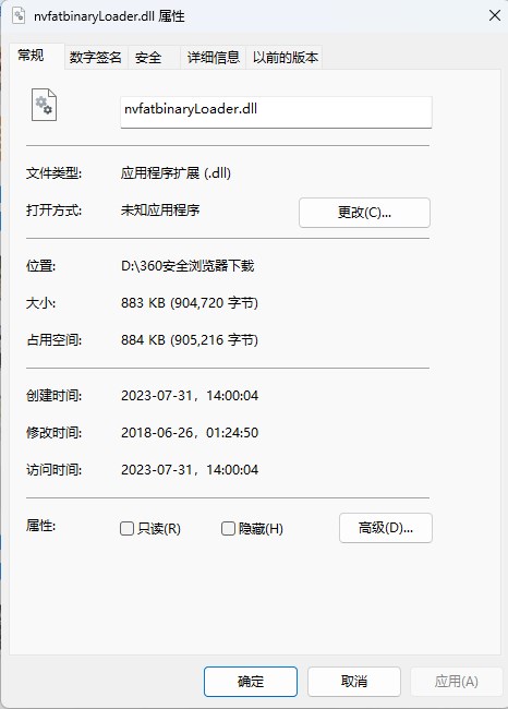 nvfatbinaryLoader.dll是存放在windows系统下的一个非常重要的dll文件。DLL英文全称Dynamic Link Library,中文意思是:动态链接库。DLL是一个作为共享函数库的可执行文件,它使进程可以调用不属于本身可执行代码中的函数。函数的可执行代码位于一个独立的动态链接库文件中,这样可以节省内存和磁盘的存储空间,同时使程序更易于升级对于系统的稳定性至关重要,缺少它可能会造成部分软件或游戏无法正常运行。缺少nvfatbinaryLoader.dll文件,当你运行软件的时候,会突然给你来个系统错误,会出现各样式的弹窗错误,这样的话你就得去下载安装一个nvfatbinaryLoader.dll文件。出现这个原因的问题有很多,不过,其中很大一部分都来源于下载了某些文件带有木马、病毒等。当电脑提示“计算机中丢失nvfatbinaryLoader.dll”或“没有找到nvfatbinaryLoader.dll”等类似错误信息,赶紧来本站下载该文件,本站提供nvfatbinaryLoader.dll文件,使用它可以帮助用户解决上述问题。