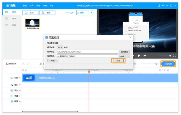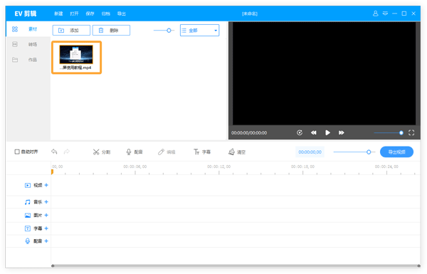 1.打开EV剪辑,导入需要调整音量的视频