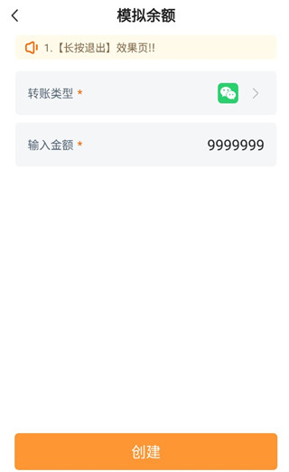 2、我们先尝试一下模拟余额,输入自己想要的金额,然后创建即可;