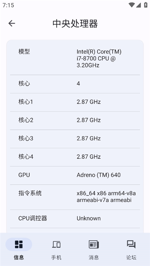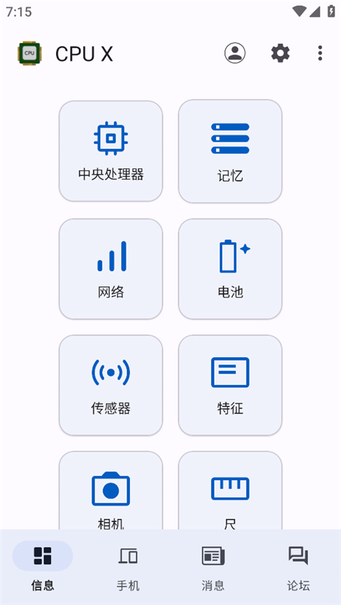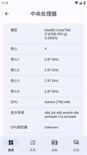 1、全面的设备信息: 该应用提供了关于Android设备各个方面的详细信息。 2、规格比较: 用户可以将自己的设备规格与其他Android智能手机进行比较,从而更好地了解设备在各个方面的性能和特点。 3、社区交流: "CPU X" 提供了一个社区平台,让用户能够与世界各地的技术爱好者进行讨论和交流。用户可以提问、回答问题,分享自己的知识和经验。 4、技术讨论和分享: 这个应用为用户提供了一个探讨技术话题、分享技术见解的空间。无论是技术新闻、趋势,还是问题解决方案,用户都可以在这里寻找和分享有价值的信息。 5、便捷使用: 软件界面设计简洁易用,使用户可以轻松浏览各项设备信息,进行比较和交流。CPU X功能介绍