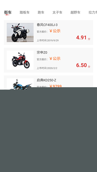 3、所有的摩托车车型会有着非常详细的分类,用户可以快速找到自己心仪的摩托车。
