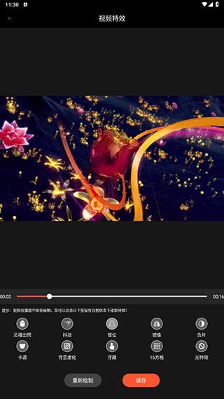 4、选择需要的功能,进入特效编辑界面,选择好后,点击保存即可