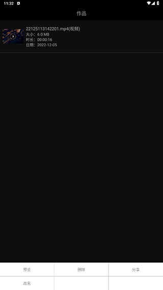 6、保存的作品将在【作品】栏目中,你可以从软件中轻松分享出来