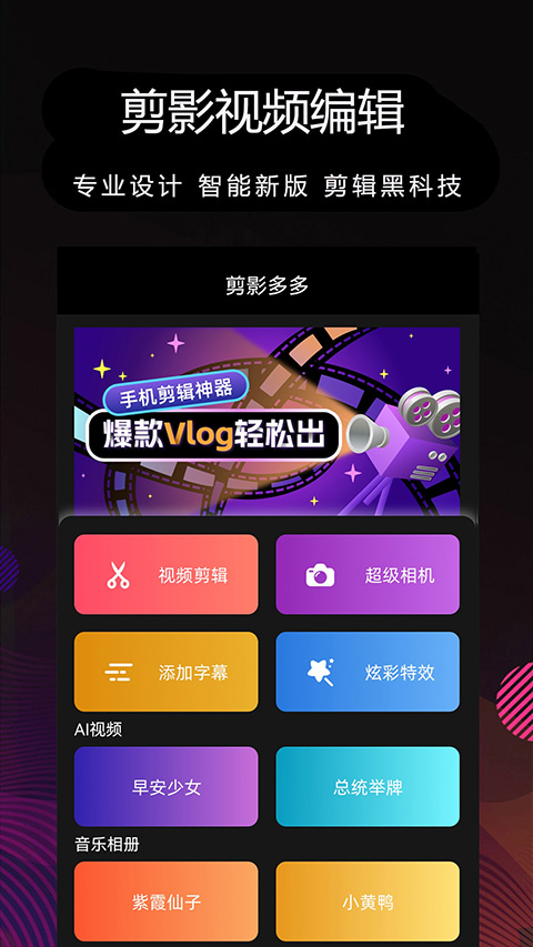 1、从本站下载剪影多多视频制作软件,打开应用,即可看到首页功能,效果一目了然