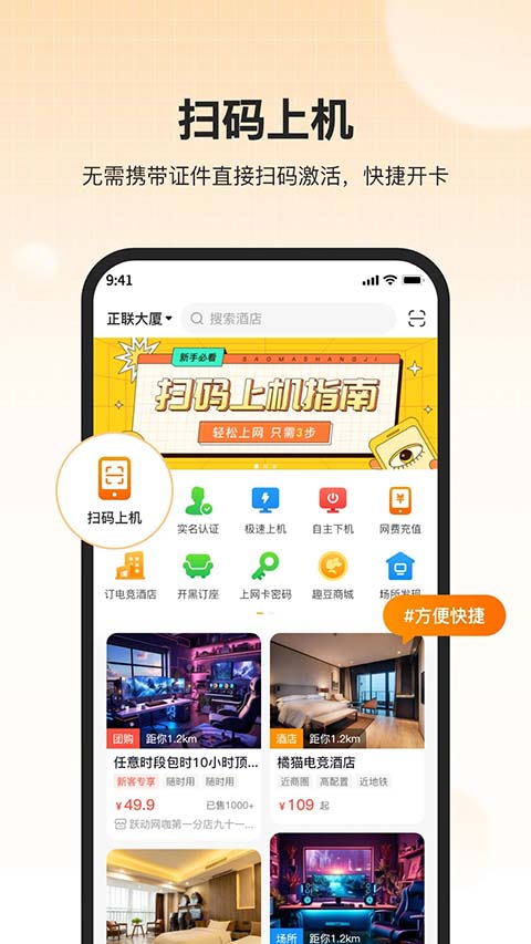1、提供精准搜索功能,将网吧的信息输入,随时查找网吧的信息; 2、线上订座,能够在线预订多个位置,便于用户游戏开黑; 3、自由下机,根据用户上网的时间,自由下机,没有时间限制; 4、实时在线支付费用,根据每次上网的时间,下机即可支付费用; 5、将喜欢的网吧添加关注,能够随时插卡关注网吧的信息; 6、实名认证,登录应用后输入自己的身份证信息,实名上网和交友。去上网app怎么用