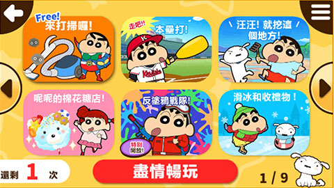 2、然后就可以看到有很多蜡笔小新游戏在等着你畅玩,可以选择你喜欢玩的游戏类型!