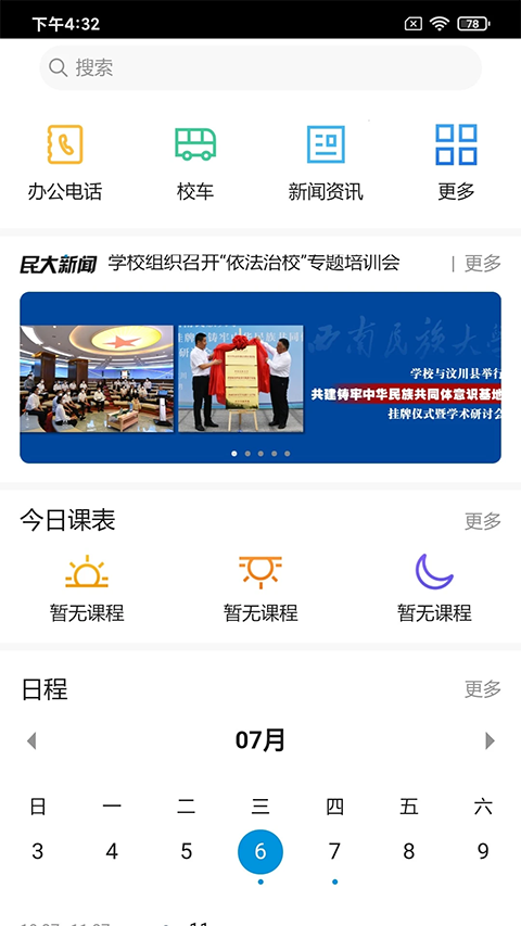 1、成绩课表、办公电话、工资财务,随时随地随手查; 2、新闻、通知、日程,不错漏任何重要讯息; 3、校园活动、圈子、发现,一手掌握学校新鲜事; 4、一卡通服务、云盘、邮箱、二手市场,方便你的校园生活; 5、新生资讯、离校办理、就业招聘、奖惩助贷打通入学到毕业任督二脉!功能介绍