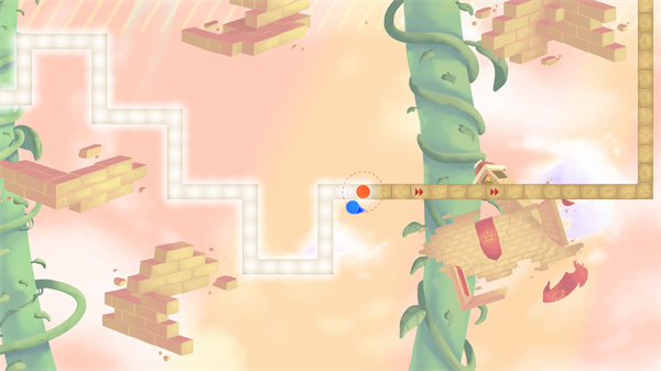 2、游戏一开始会有两个球在格子组成的面上互相转圈,每点一下小球就会在方格里前进一步。方向由点击时小球在的格子为准。